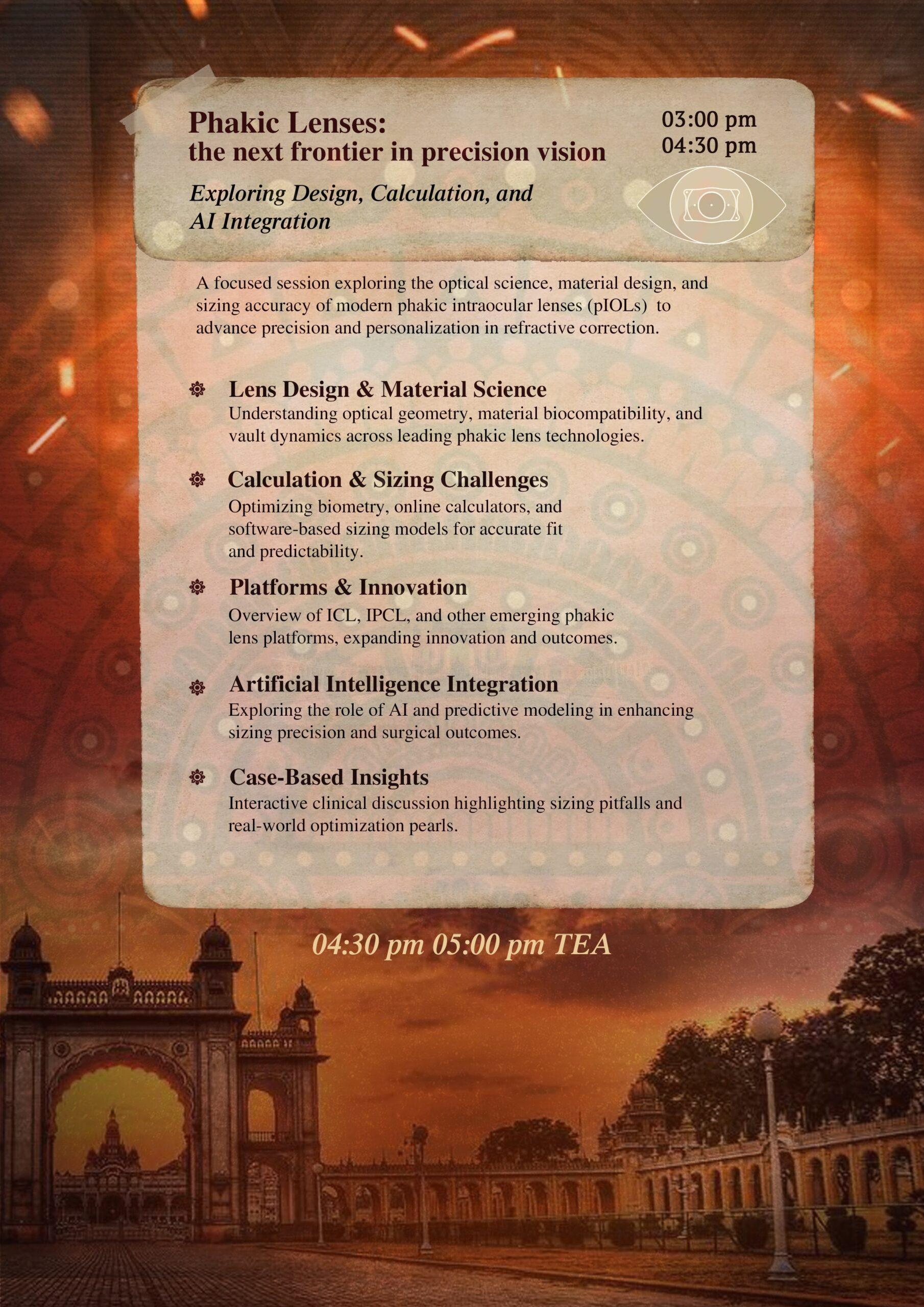 Home / CME / Voice of Refractive Surgery 4.0 2026 Voice of Refractive Surgery 4.0 2026 Registration Type Choose an optionVORS + DEOSSVORS/ DEOSS Accommodation Type Choose an optionSingle/Double OccupancyWithout Accommodation No. of Room Nights Choose an option1 rooming night2 rooming nights3 rooming nightsWithout Accommodation Additional Room Night Choose an option1 Additional Rooming NightNo Additional Room NightWithout AccommodationClear Name(Required)GenderMaleFemaleDate of Birth DD slash MM slash YYYY Mobile Number(Required)Email ID(Required) Medical Council(Required)Andhra Pradesh Medical CouncilArunachal Pradesh Medical CouncilAssam Medical CouncilBihar Medical CouncilChattisgarh Medical CouncilDelhi Medical CouncilGoa Medical CouncilGujarat Medical CouncilHaryana Medical CouncilHimanchal Pradesh Medical CouncilJammu & Kashmir Medical CouncilJharkhand Medical CouncilKarnataka Medical CouncilMadhya Pradesh Medical CouncilMaharashtra Medical CouncilManipur Medical CouncilMedical Council of IndiaMizoram Medical CouncilNagaland Medical CouncilOrissa Council of Medical RegistrationPunjab Medical CouncilRajasthan Medical CouncilSikkim Medical CouncilTamil Nadu Medical CouncilTelangana State Medical CouncilTravancore Cochin Medical CouncilTripura State Medical CouncilUttarakhand Medical CouncilUttar Pradesh Medical CouncilWest Bengal Medical CouncilOCI / IOA / OthersOtherMedical Council Registration Number(Required)InstitutionPresent Academic QualificationContact AddressState(Required)Andhra PradeshArunachal PradeshAssamBiharChhattisgarhGoaGujaratHaryanaHimachal PradeshJharkhandKarnatakaKeralaMadhya PradeshMaharashtraManipurMeghalayaMizoramNagalandOdishaPunjabRajasthanSikkimTamil NaduTelanganaTripuraUttarakhandUttar PradeshWest BengalAndaman and Nicobar IslandsChandigarhDadra and Nagar Haveli and Daman & DiuThe Government of NCT of DelhiJammu & KashmirLadakhLakshadweepPuducherryOtherCity(Required)Accommodation Type(Required)VORS or DEOSS Without Accommodation: ₹ 7,500VORS+DEOSS Without Accommodation: ₹ 10,000VORS Registration with 1 Rooming Night: ₹ 25,000VORS Registration with 2 Rooming Nights: ₹ 40,000VORS+DEOSS Registration with 3 Rooming Nights: ₹ 60,000Unique ID Voice of Refractive Surgery 4.0 2026 quantity Add to cart Programme Schedule CONTACT US